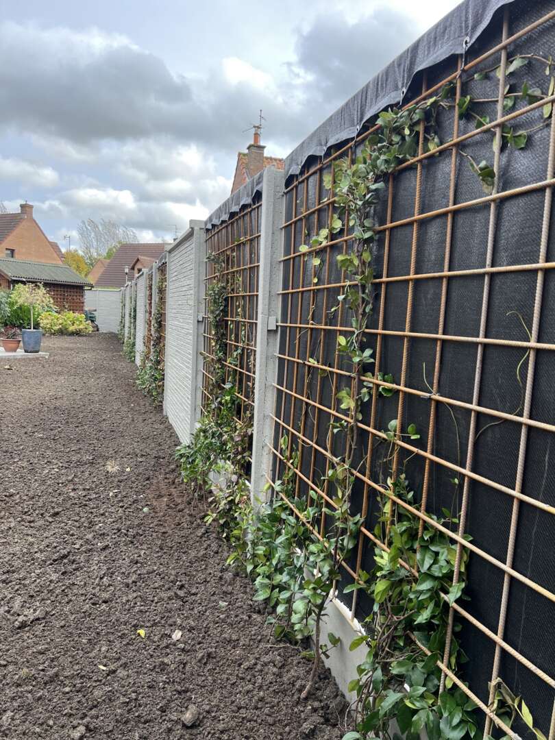 Een mix van betonafsluiting en klim beplanting.